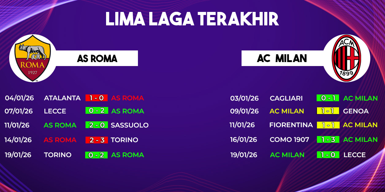 Saat ini, AS Roma menempati peringkat keempat klasemen sementara Serie A, sementara AC Milan kokoh di posisi kedua. Selisih poin yang tipis membuat hasil pertandingan ini berpotensi mengubah peta persaingan di papan atas, baik dalam perebutan gelar juara maupun tiket Liga Champions musim depan.