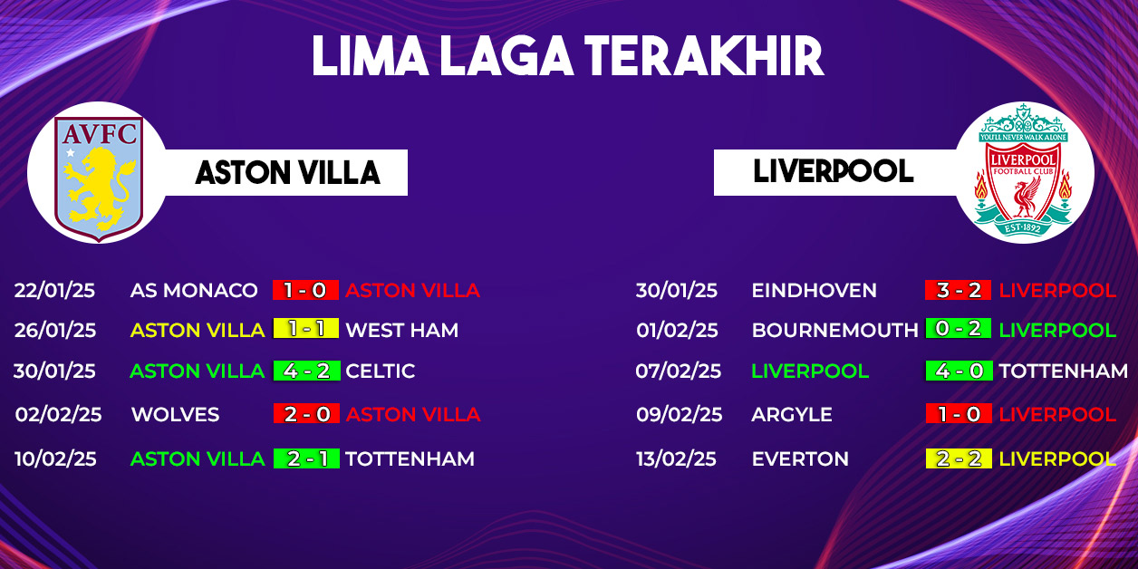 Dengan statistik tersebut, Liverpool memiliki peluang besar untuk kembali meraih kemenangan di Villa Park. Namun, Aston Villa tentu tak ingin kehilangan poin di kandang sendiri dan akan berusaha memberikan perlawanan maksimal.