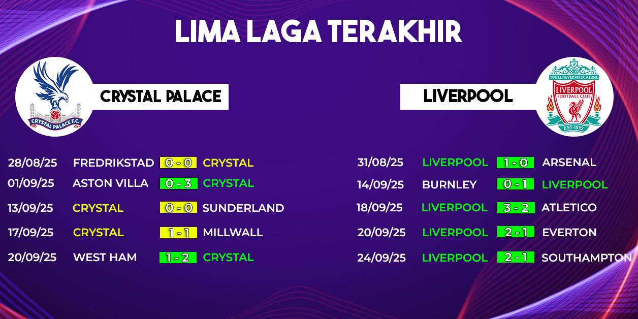 Melihat performa terkini, Liverpool jelas datang sebagai favorit. Namun, Palace bukan lawan mudah, apalagi mereka sedang dalam tren positif dan punya rekor bagus di awal musim. Faktor dukungan publik Selhurst Park juga bisa memberi energi tambahan bagi tim tuan rumah.