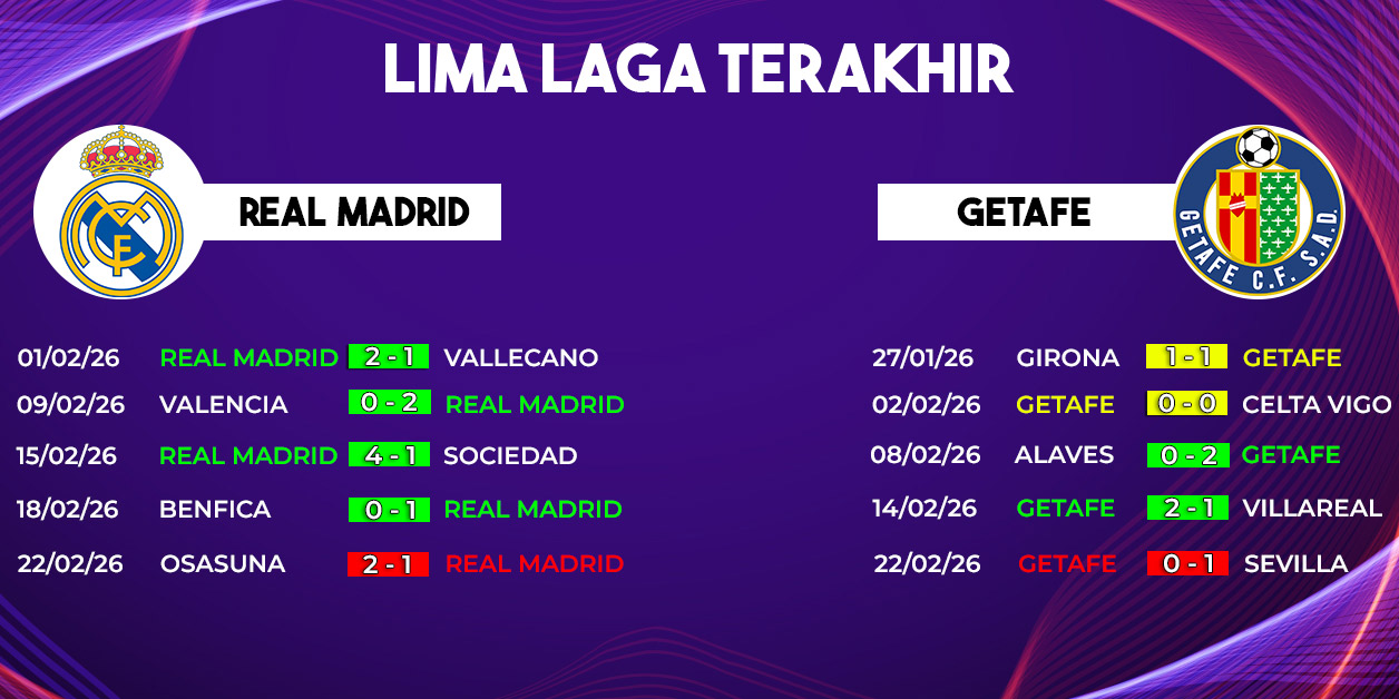 Getafe tetap memiliki peluang jika mampu bermain disiplin dan memaksimalkan peluang terbatas. Namun secara keseluruhan, kami melihat dominasi Los Blancos akan kembali berlanjut dalam duel 3 Maret 2026 ini.